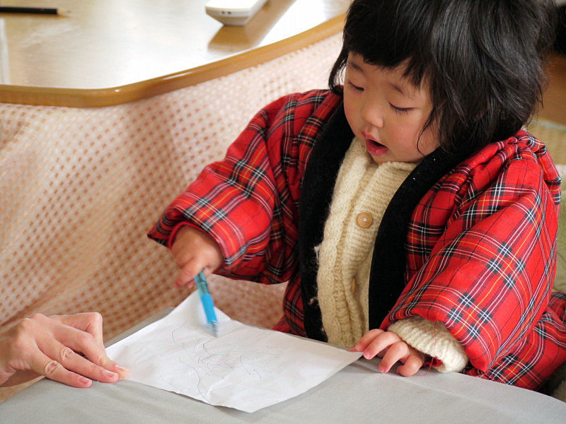 最近、お絵かきが大好きで、ペンを持ちたくて仕方がない様子。