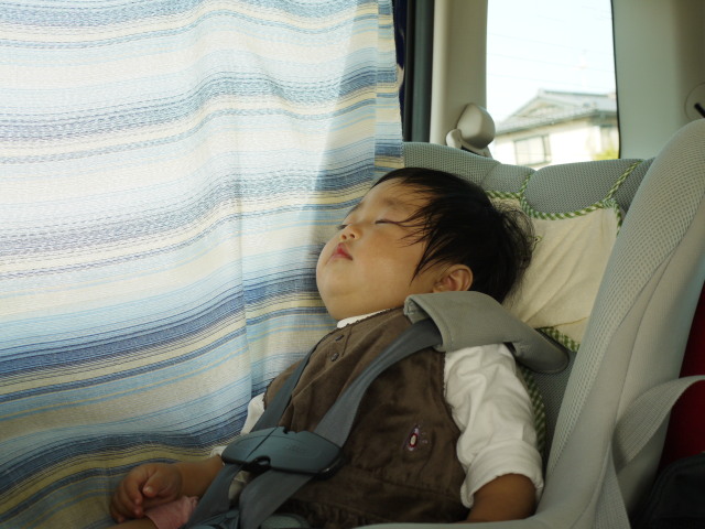 毎日のように車に乗せているけど、チャイルドシートの脇にぶらさげているカーテンで「いないいない、ばー」をするようになった。