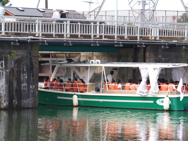 さて、いつもと違い、運河が少しにぎやかだな~ と思って見たら、珍しく船が走っていました。
