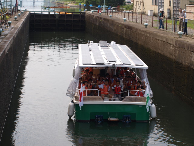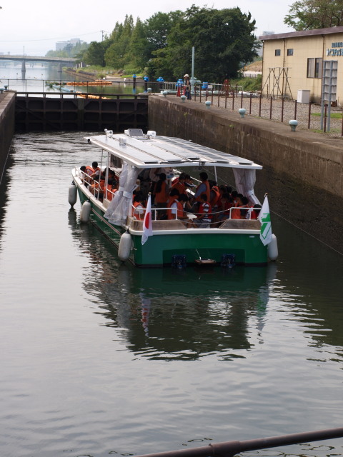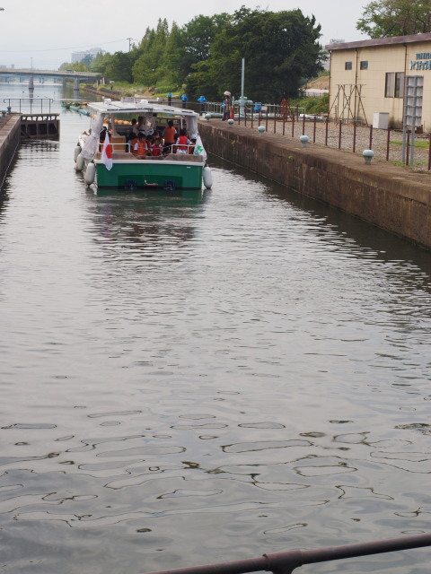 閘門に入った状態(門の向こうは水面が高い。こちらが低い)