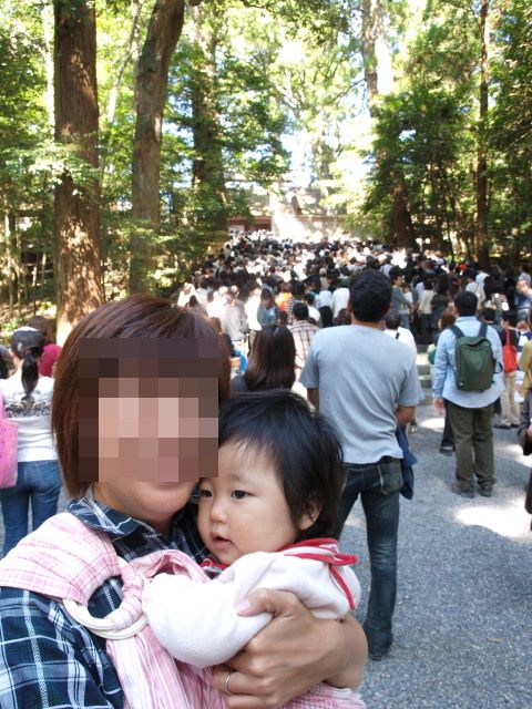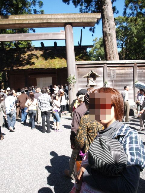 祭神:天照大御神様をを拝むこともできず、人垣の下から