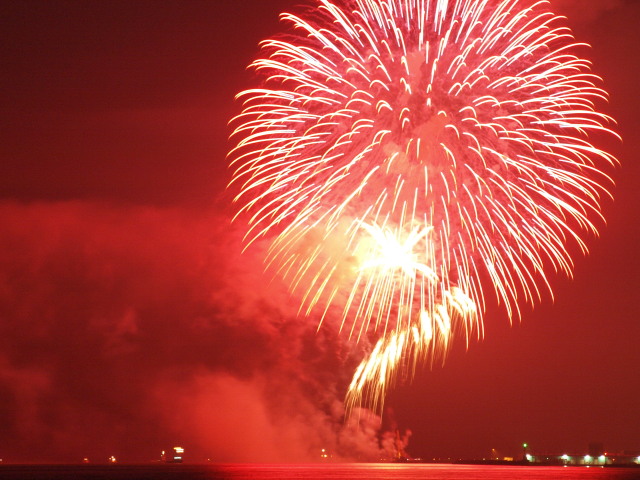 富山市に程近い 魚津(うおづ)市というところでの海上花火です。