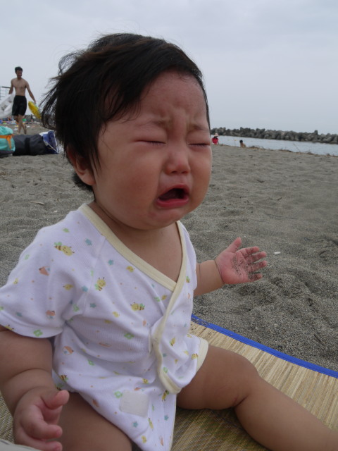 なにぶんにも、波打ち際にはゴミが多く けろ子さんを海に入れることは生理的に断念しました。