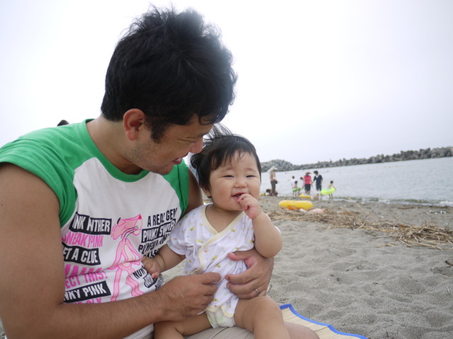 けろりんぱファミリー。ひとしきり波打ち際で遊び、大満足で帰りました。