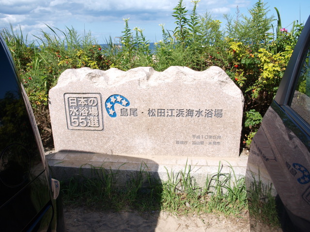 このあたりの海岸では特に義経伝説のある「雨晴(あまはらし)海岸」が有名なのですが、僕らが行ったのはほぼその隣の島尾海水浴場です。このあたり、晴れた日には富山湾越しに立山連峰の3000m級の山々を望むことができるので撮影欲を満たしてくれます。