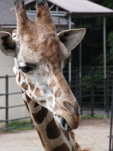 脂汗を浮かべる僕を横目に 目の前で、美味そうに草を頬張るキリンさん。