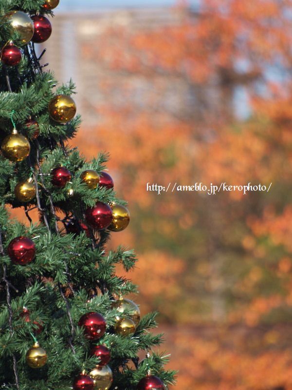 この公園は毎年この時期になると、ささやかなクリスマスイルミネーションが灯されるのですが、もうクリスマスツリーも設置されていました。
