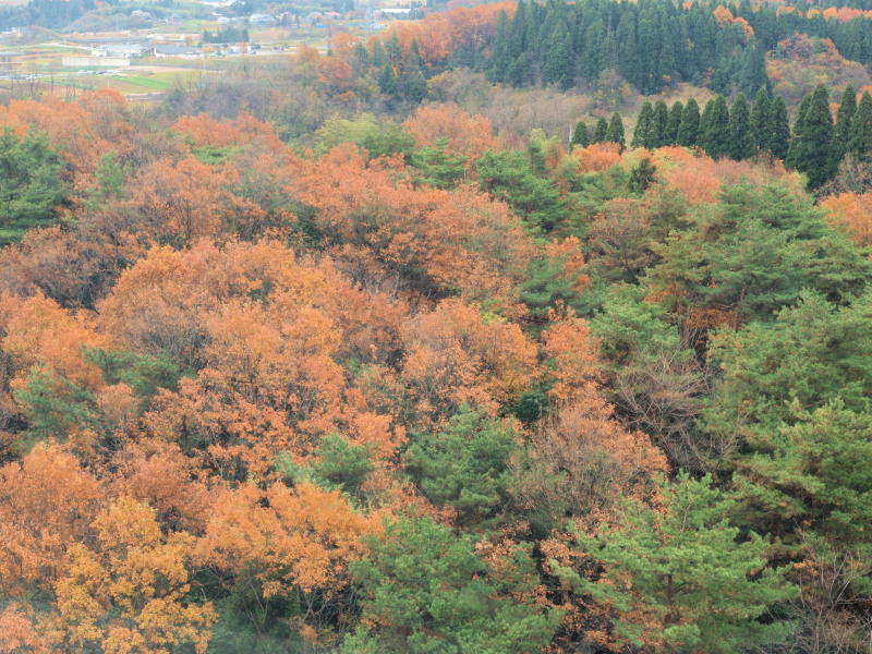 下で歩いているぶんには、もう紅葉も終わりだねぇ、なんて話をしていたのですが、上から見ると、なかなかどうして見事な光景でした。